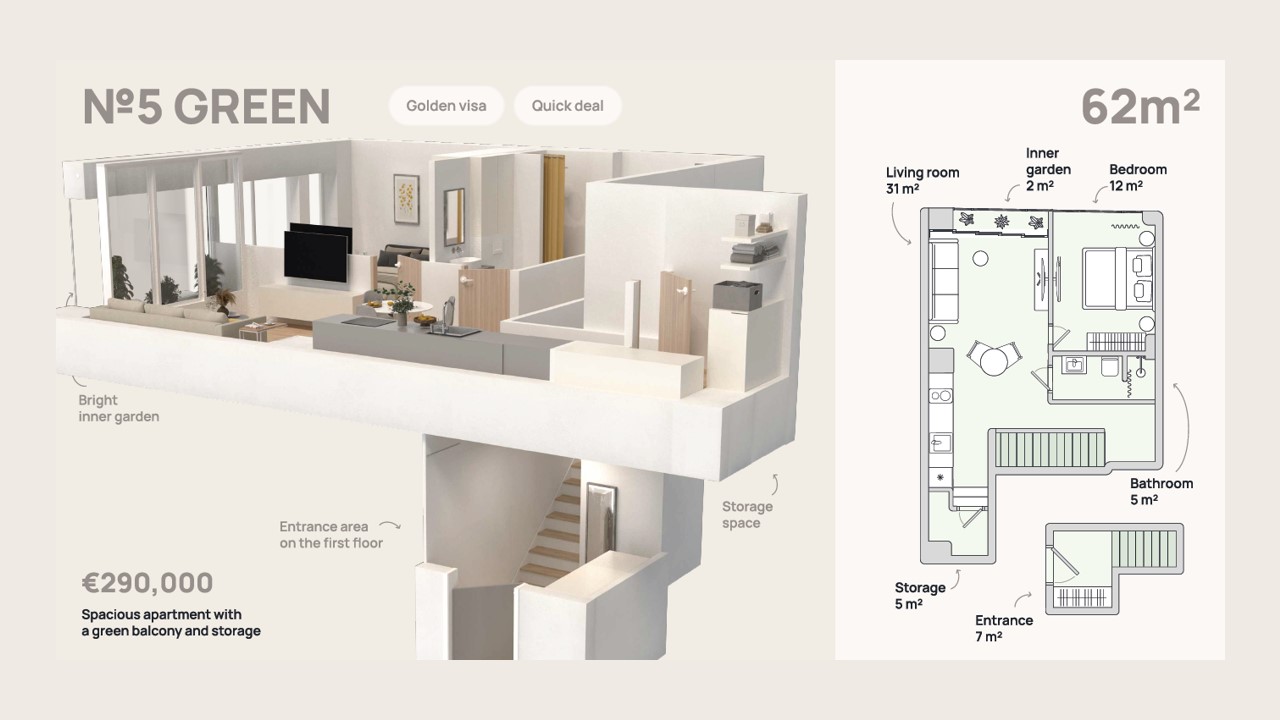 | Unit - Green | N/A | MZN | 1 | No | 62/667 | N/A | €290.000 | View plan |