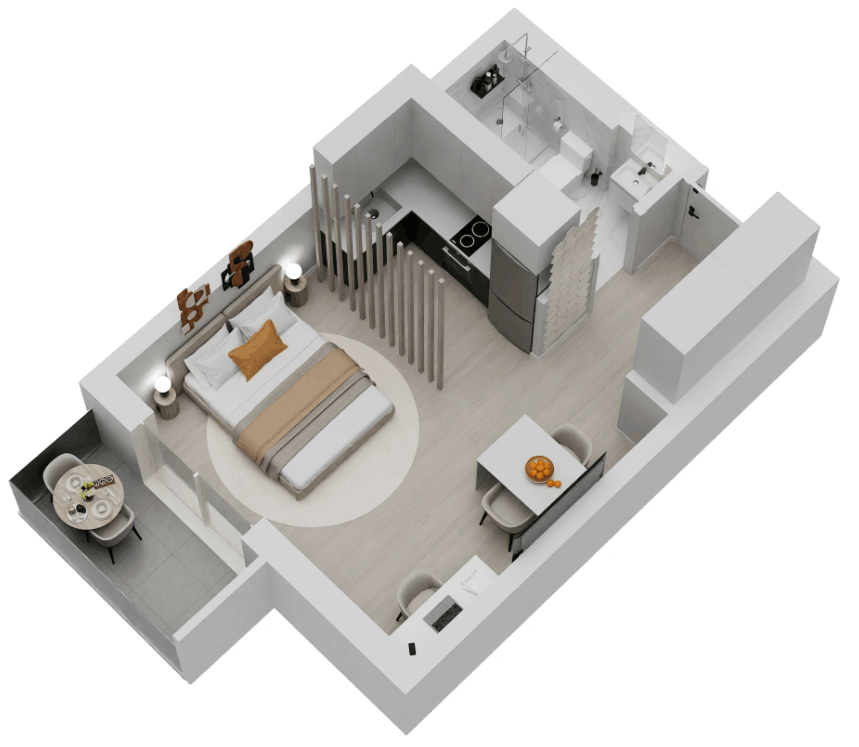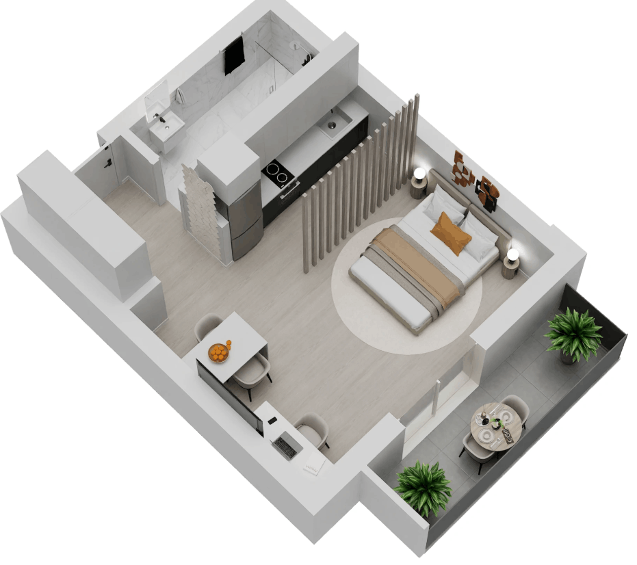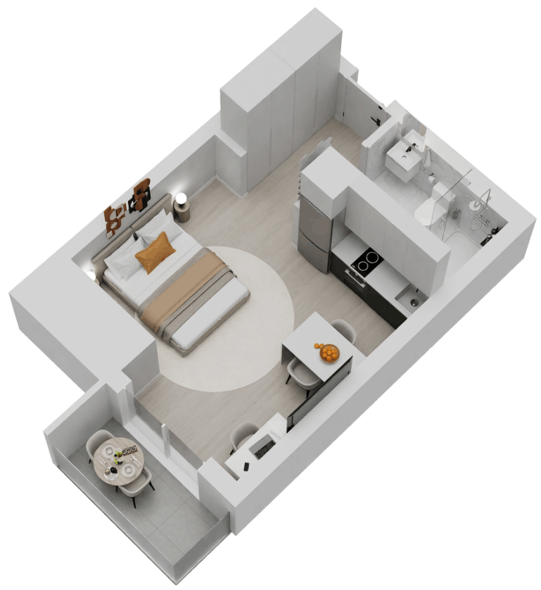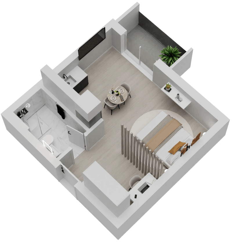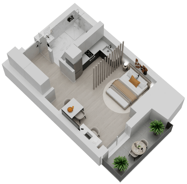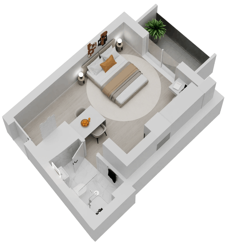 | D27 | N/A | 4 | Studio | No | 30/323 | 4/43 | €250.000 | View plan |