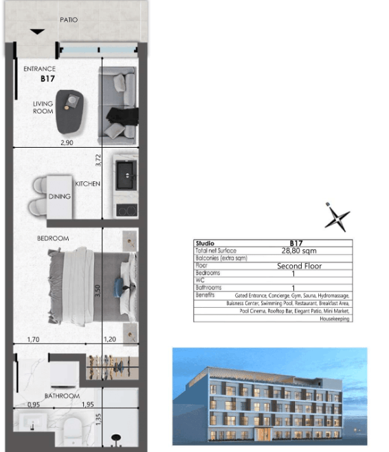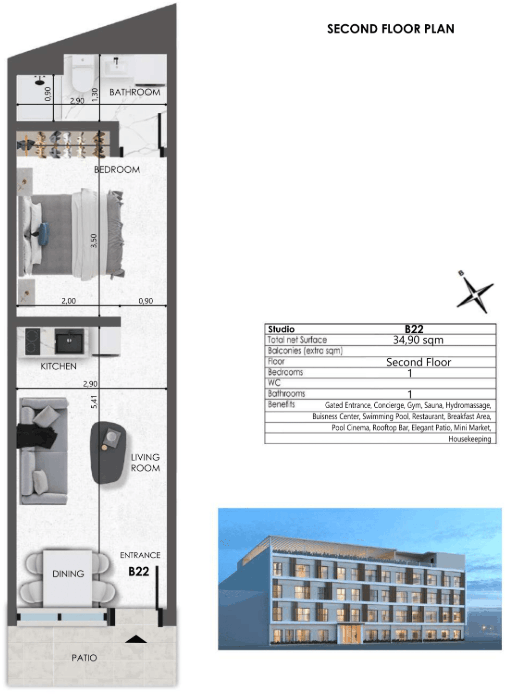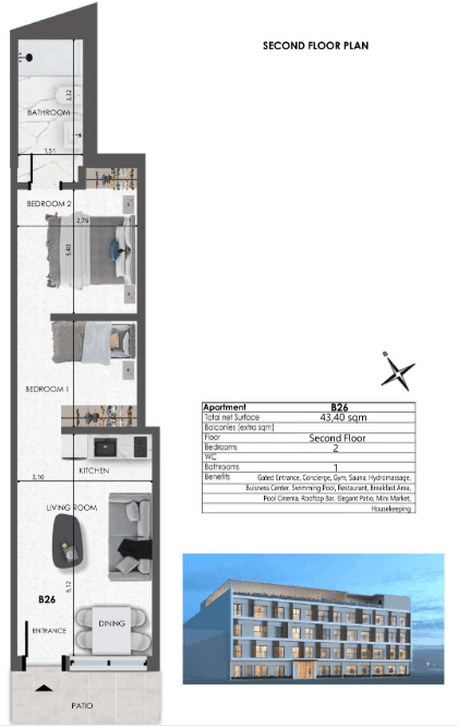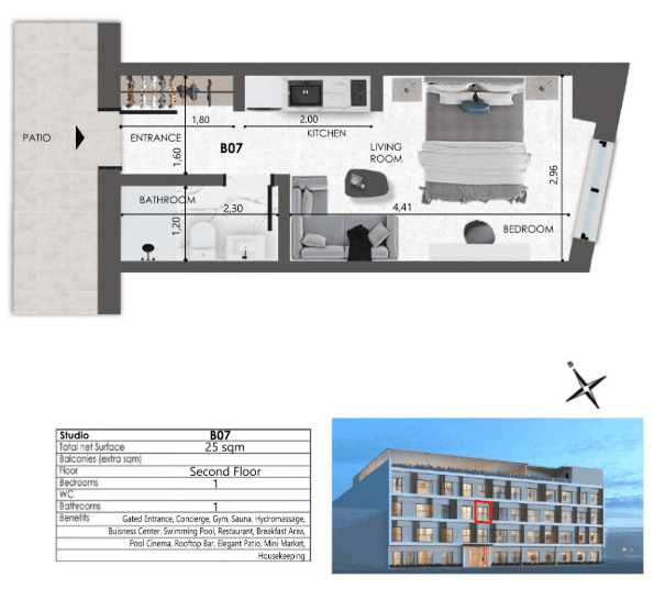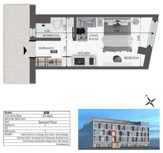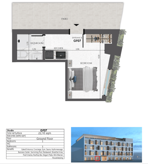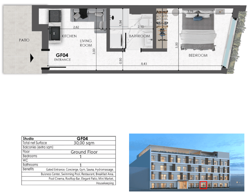 - Boutique apartment sizes ranging from 20.10 m² to 58.80 m²