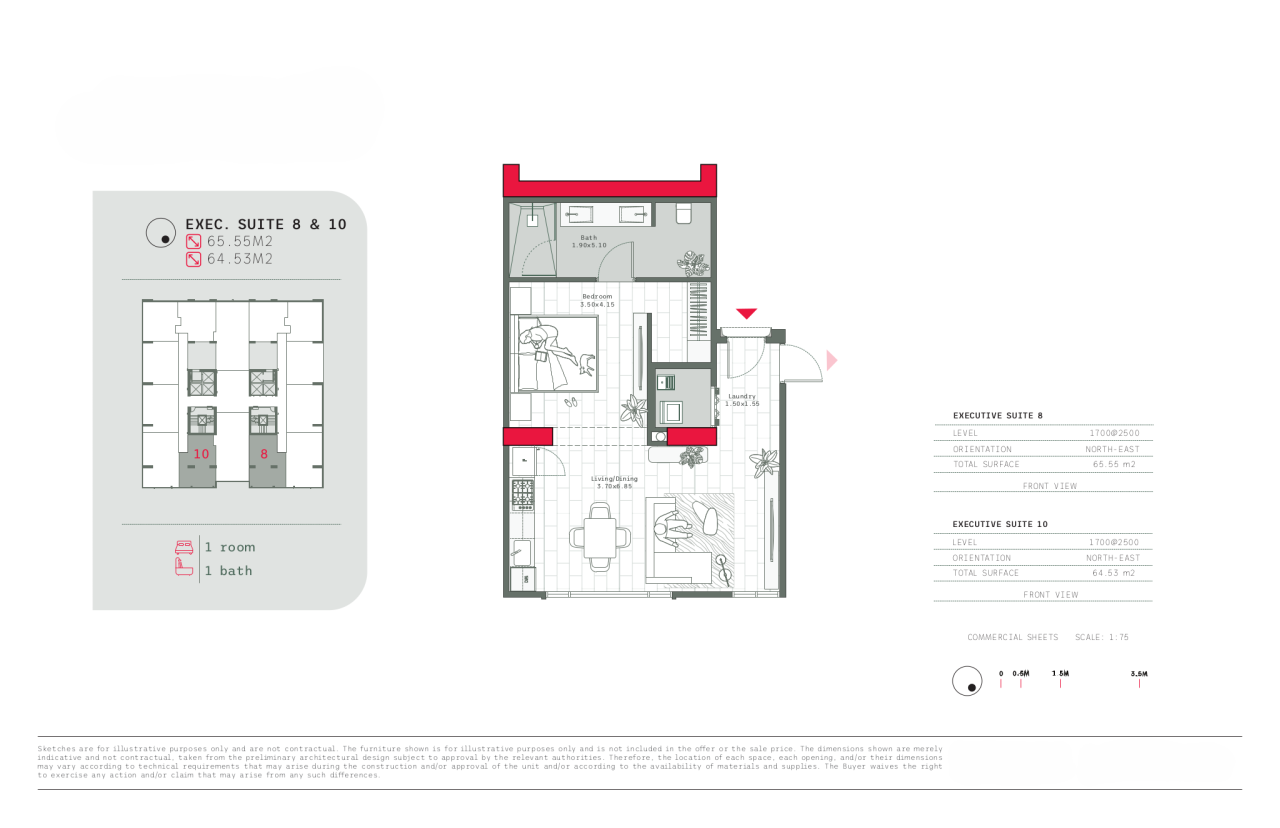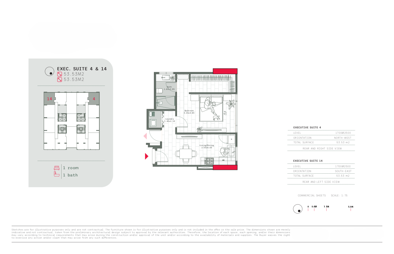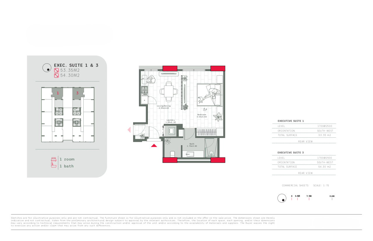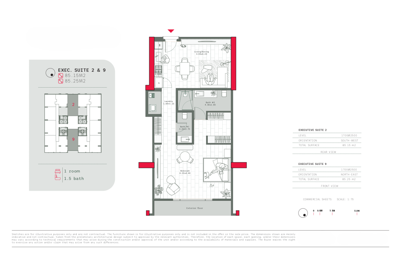 - Suite sizes from 50 to 85 square meters