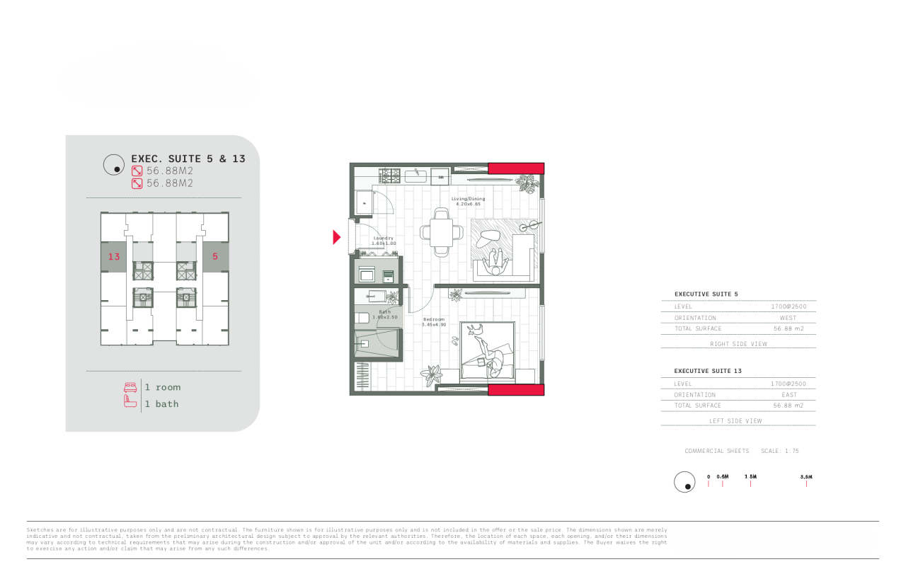 | Suite 17-5 | N/A | 17F | 1 | Yes | 57/614 | N/A | $328.482 | View plan |